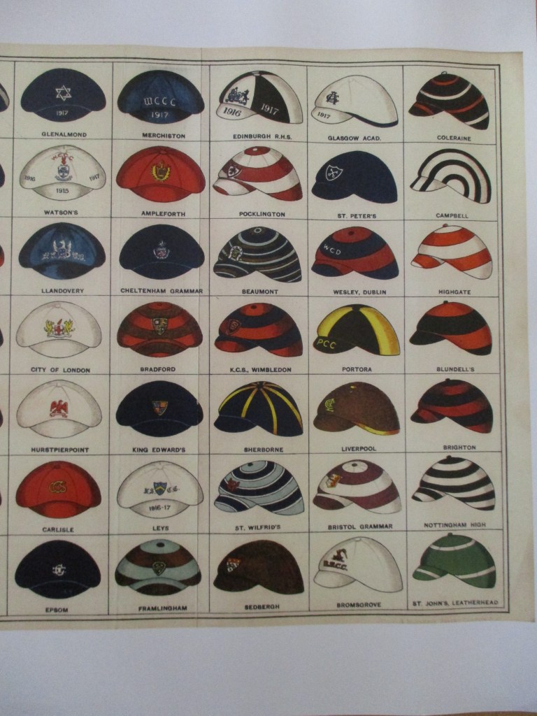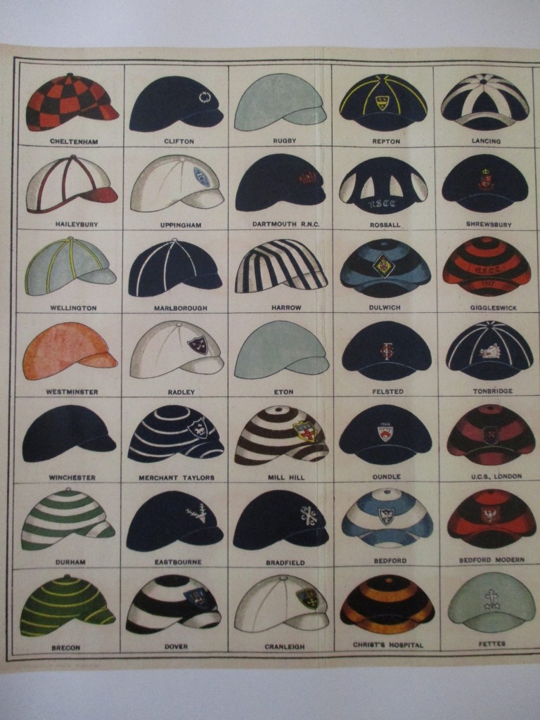 The schools were early adopters of cricket caps: Eton (light blue) and Winchester (blue) in 1851, and Harrow (striped) in 1852, followed by Cambridge (1861) and Oxford (1863).